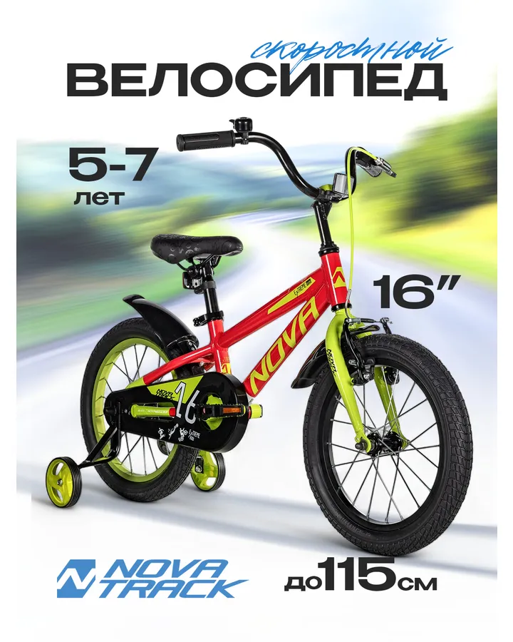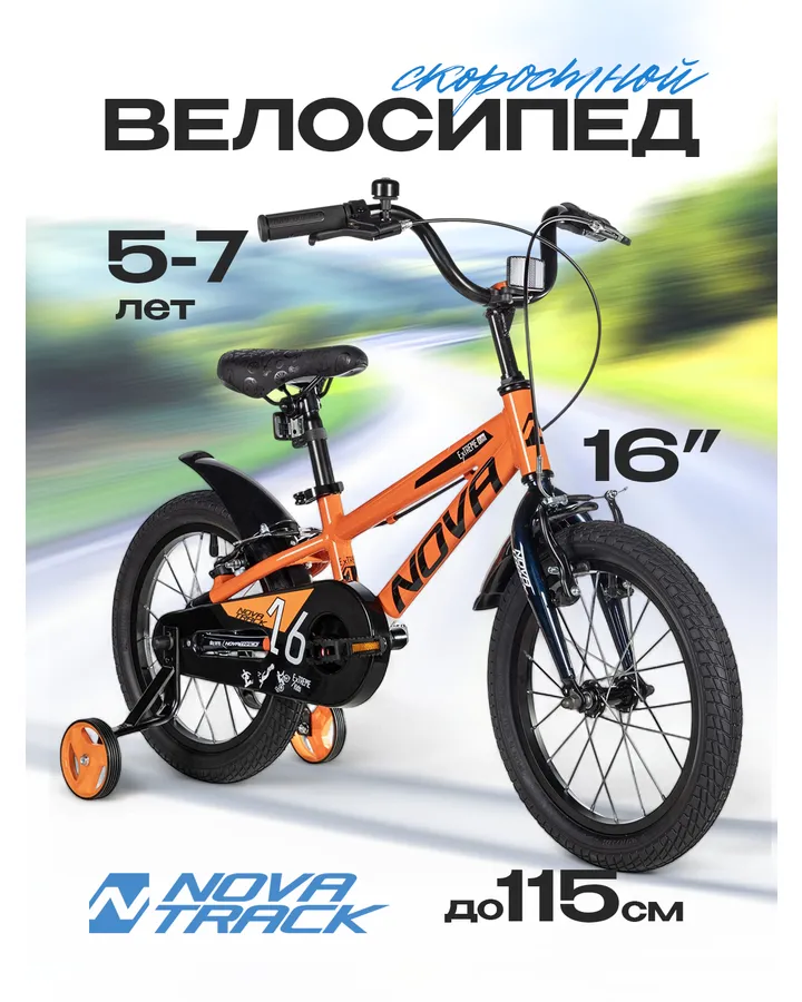 5Двухколесный велосипед Novatrack 16 дюймовОчень маневренный велосипед, легкий в управлении, тормоза хорршр работают