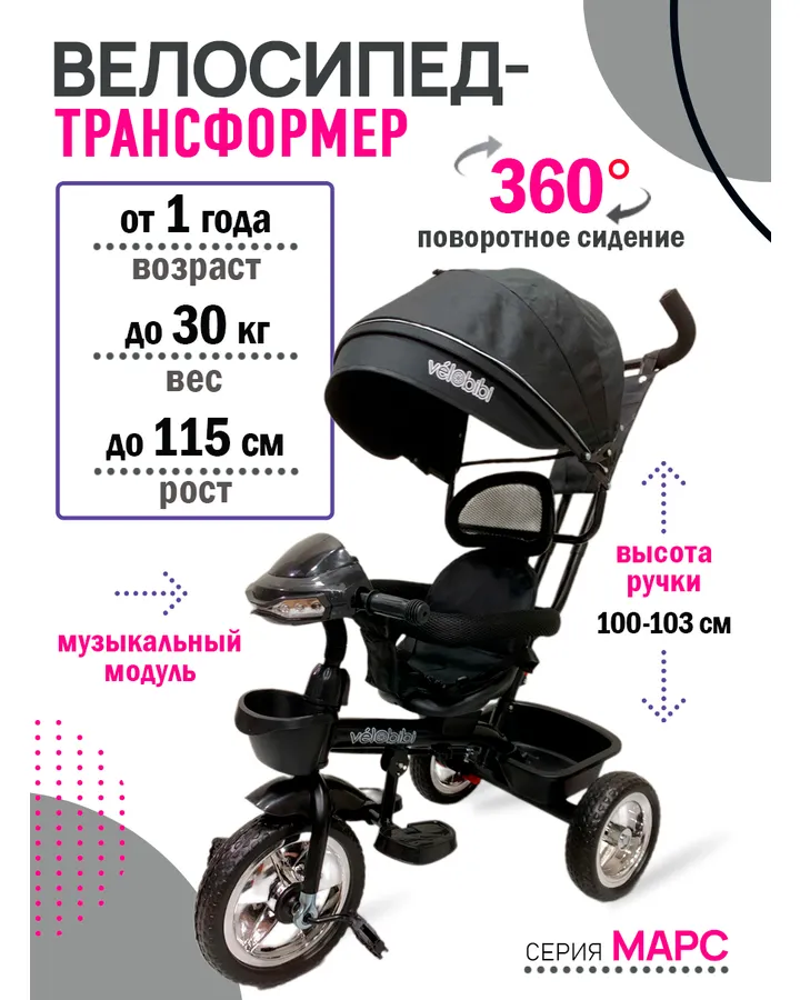 • Трехколесные каталки с ручкой для родительского контроля для самых маленьких.