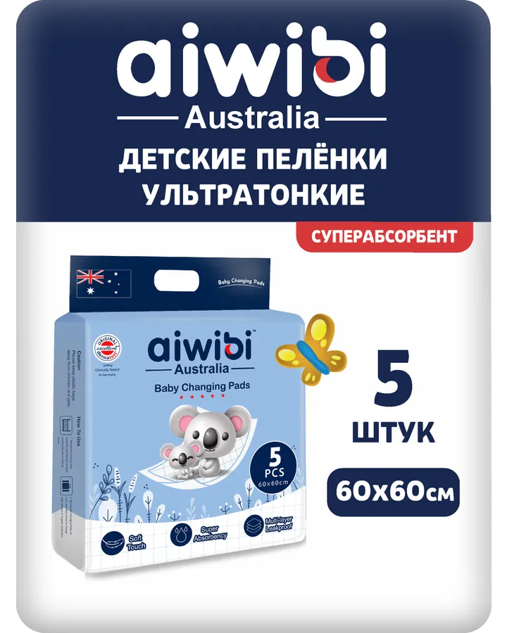 Пелёнки одноразовые AIWIBI 60х60 см 5 шт.