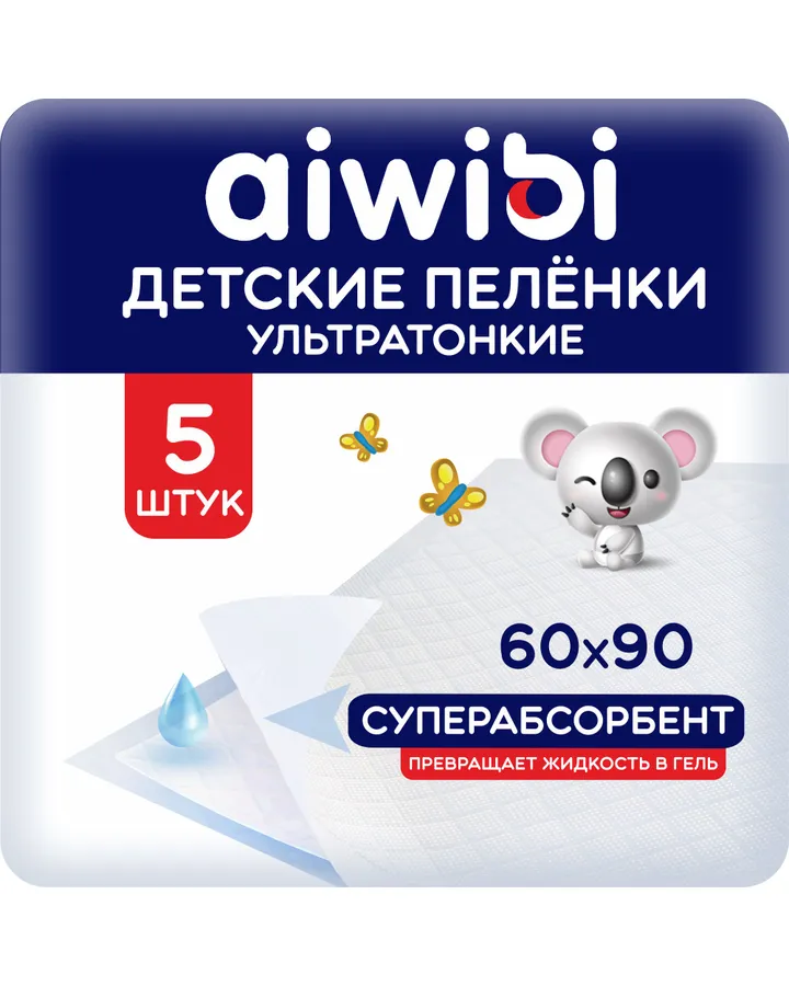 5Пелёнки одноразовые AIWIBI 60х90 см 30 шт.Классные пеленки. Особенно впечатлили липучки на обратной стороне