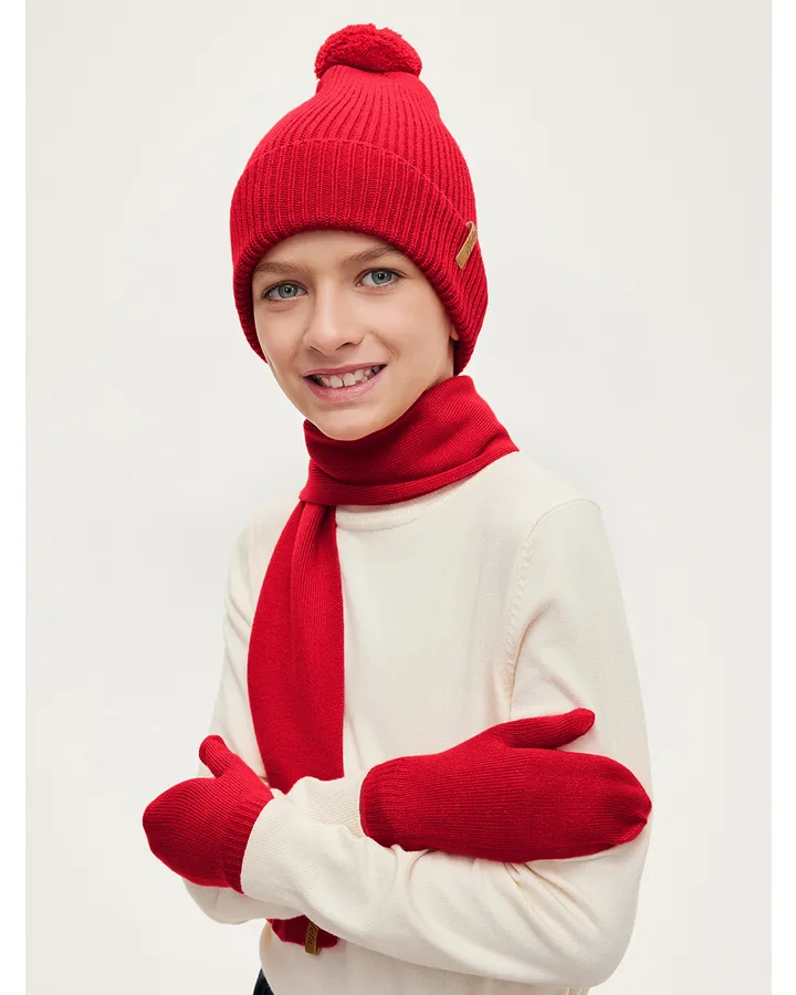 Теплая шапка с подкладом х/б, не растягивается. Шарф хорошей длины, ни длинный, ни короткий. После стирки не линяет. Елинсивенное, варежки маломерят.