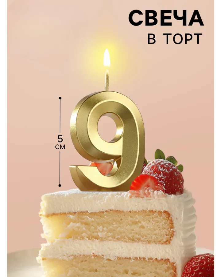 Свеча в торт Страна Карнавалия Грань цифра «9» золотая 5 см
