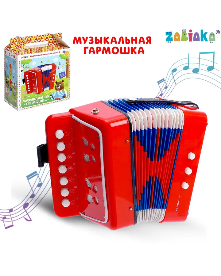 5Игрушка музыкальная Zabiaka аккордеонУпаковано аккуратно.Звук почти как у настоящей.Тяжеловато растягивается .Все кнопки рабочие.