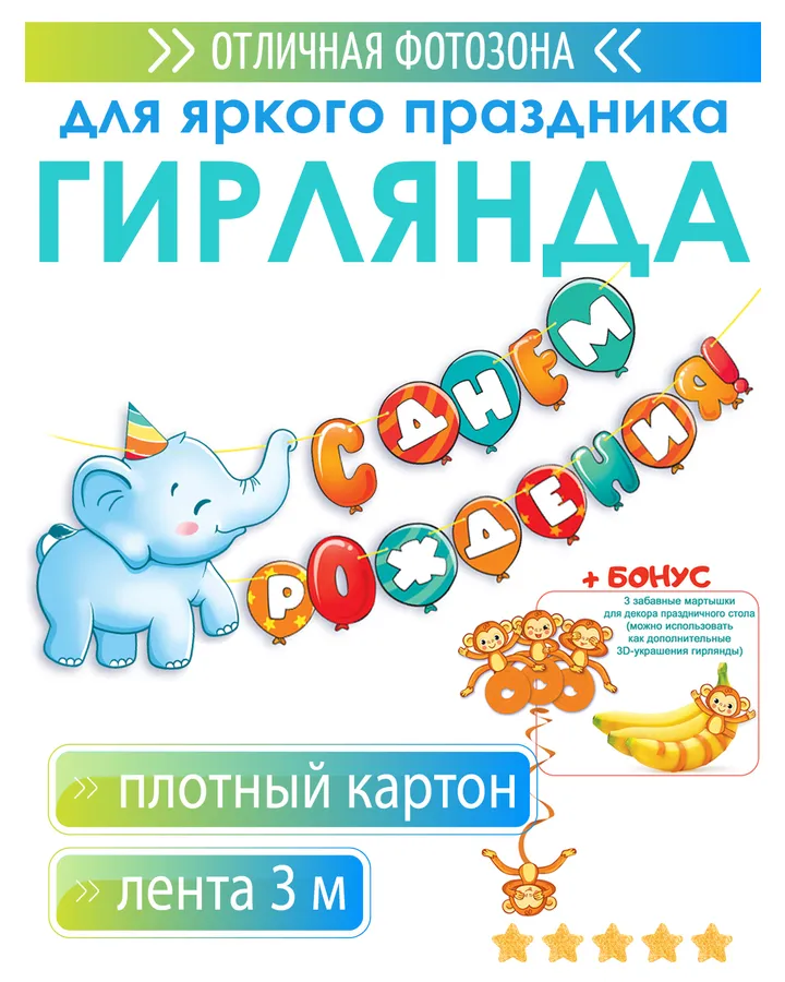 Гирлянда-растяжка HAPPY С Днём Рождения