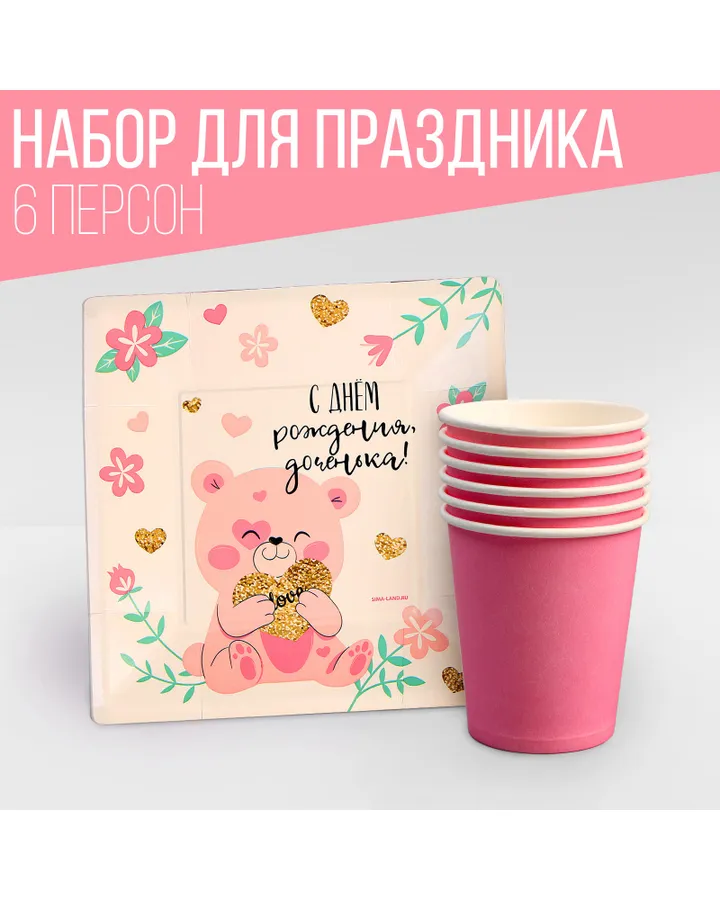 Набор одноразовой посуды ND PLAY Чебурашка стаканы 250мл тарелки 18см по 12шт