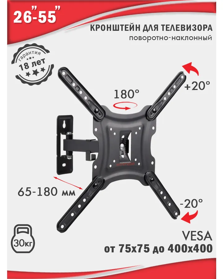 Кронштейн для телевизора ARM MEDIA Plasma-6Купил, повесил и забыл, телевизор спокойно висит на кронштейне который месяц подряд, так что всё отлично. В комплекте с кронштейном прилагался "набор для монтажа".