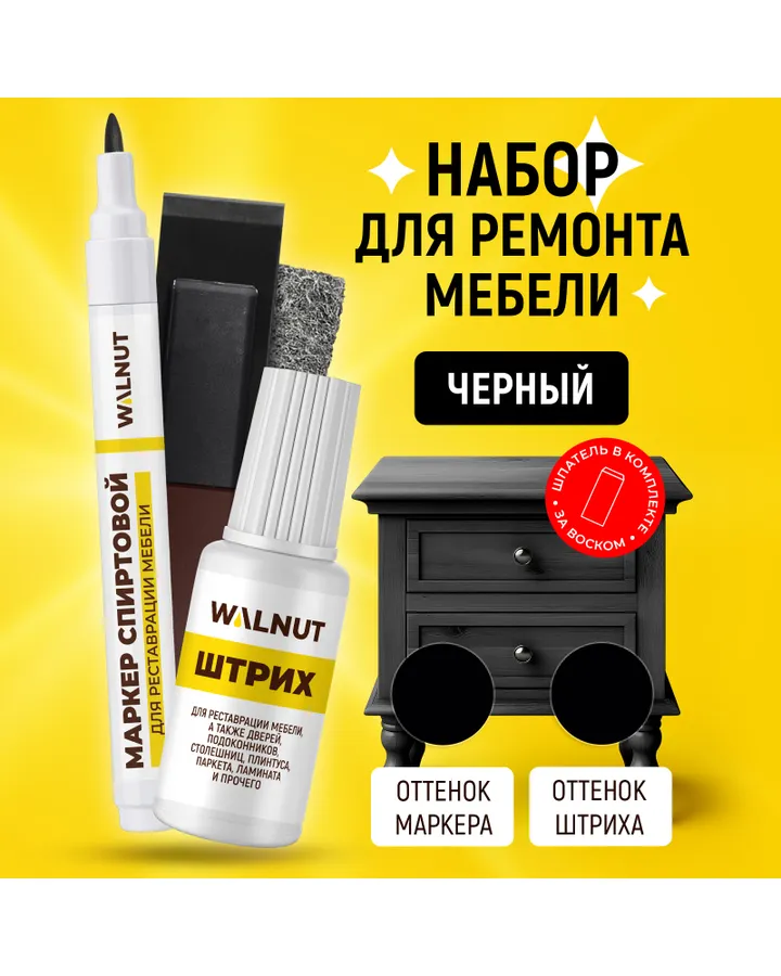 Маркер WALNUT для реставрации мебели пола столешниц Черный