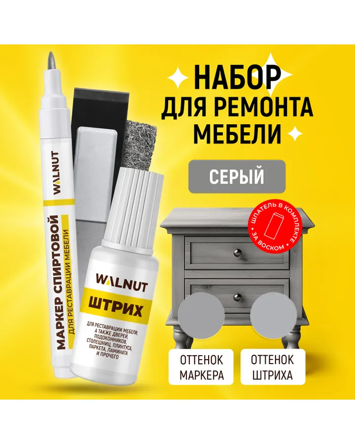 Штрих WALNUT для реставрации мебели, пола, столешниц (Серый темный)