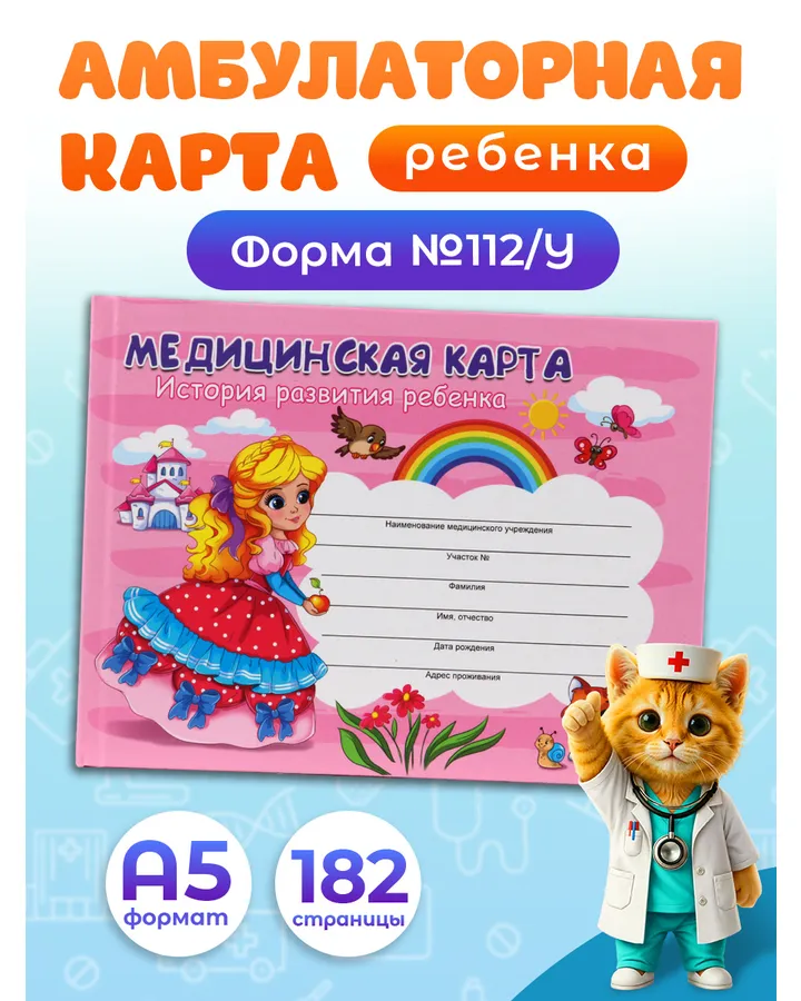 Медицинская карта Prof-Press Девочка А5 96 листов