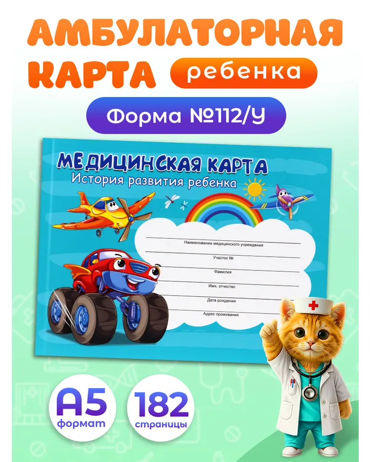 Медицинская карта Prof-Press Самолёт и авто А5 96 листов