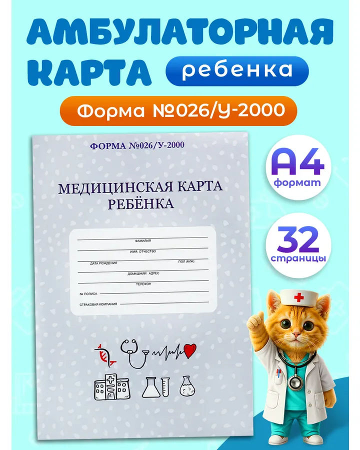 Медицинская карта Prof-Press Кошечка А5 96 листов