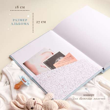 Фотоальбом-дневник Moms Recordbook Первый альбом малыша голубой для мальчика кожа