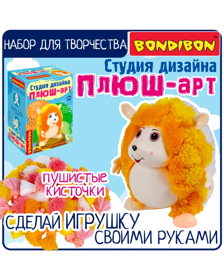 Набор для творчества Bondibon аппликация Плюш-арт Ежик фигурка