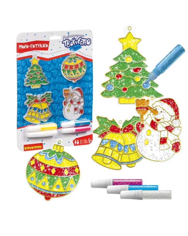 Набор для творчества Bondibon Новогодние витражи 4 штуки