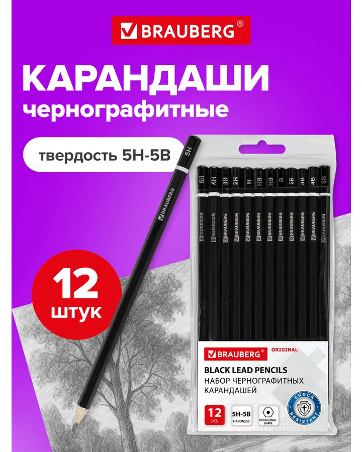 Карандаши чернографитные BERLINGO 1 шт. в ассортименте