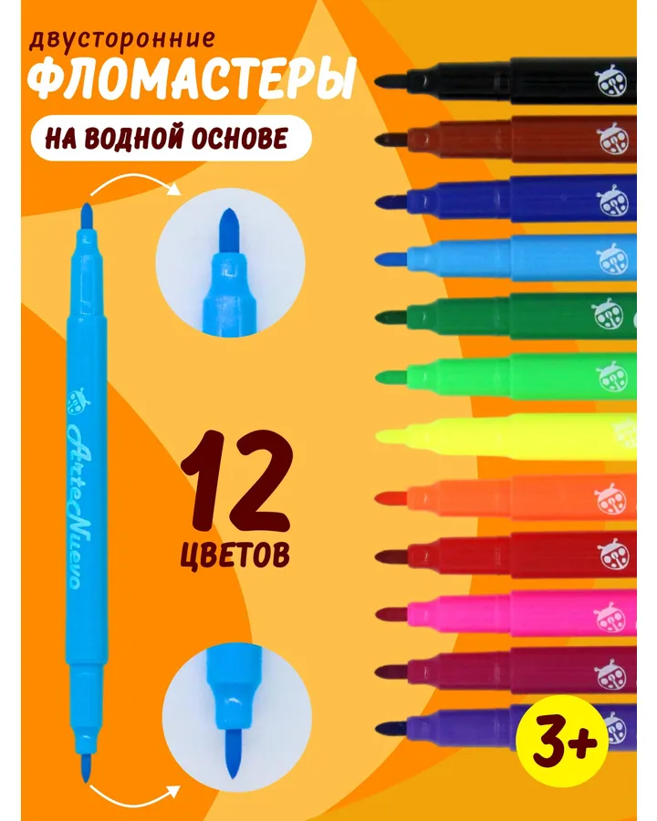 Фломастеры Arte Nuevo двусторонние 12 шт.