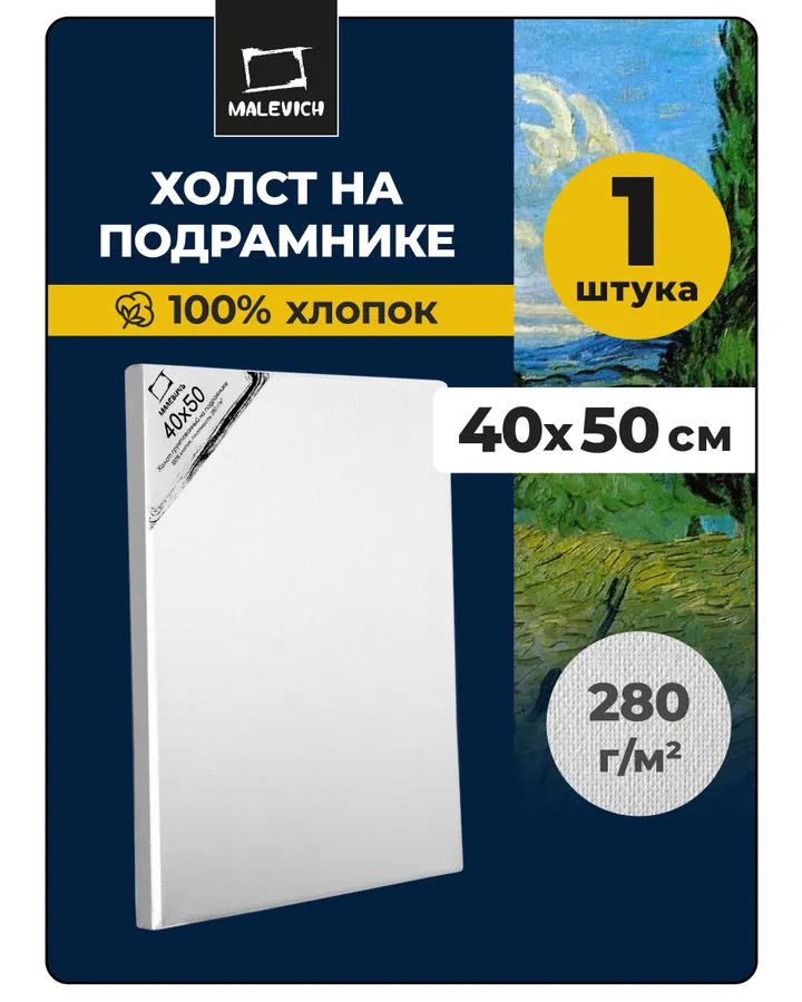 Холст для рисования Brauberg на подрамнике 30х40 см грунтованный 100% хлопок