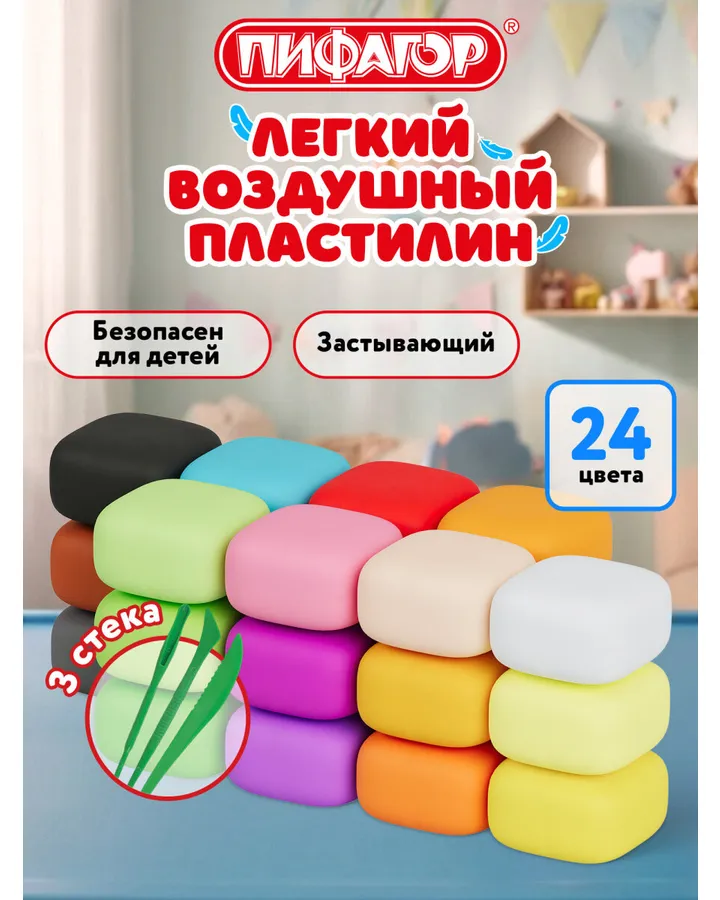 Пластилин Пифагор воздушный 24 цв.