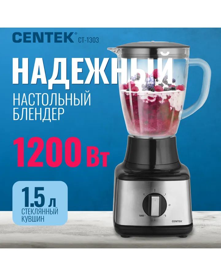 5Блендер CENTEK CT-1333 Черный/сталь 1500Вт подсветка мягкое покрытие soft touchПроста пушка очень хороший блендер я доволен рекомендую