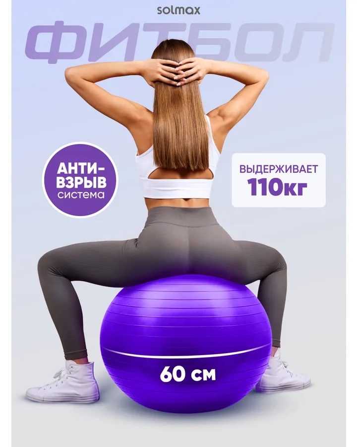 5Фитбол Solmax фиолетовый 70 смКачественный гимнастический мяч. Разгружает спину маме, когда надо укачивать малыша.