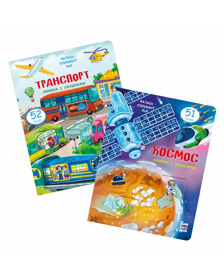 Набор детских книг BimBiMon с окошками Транспорт и Космос