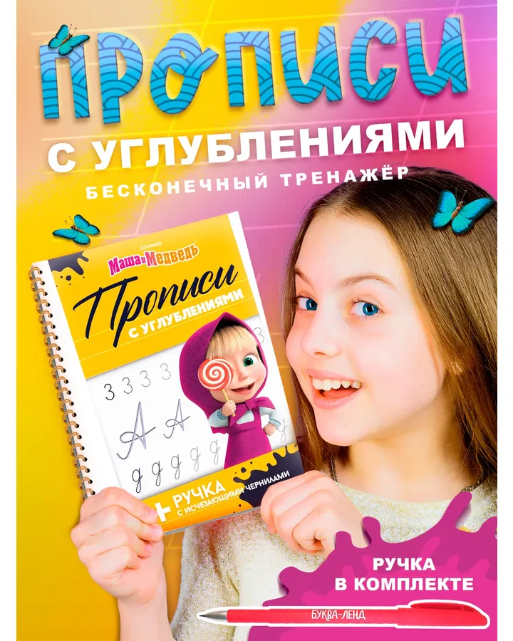 Многоразовые объёмные прописи Маша и Медведь с углублениями Маша и Медведь