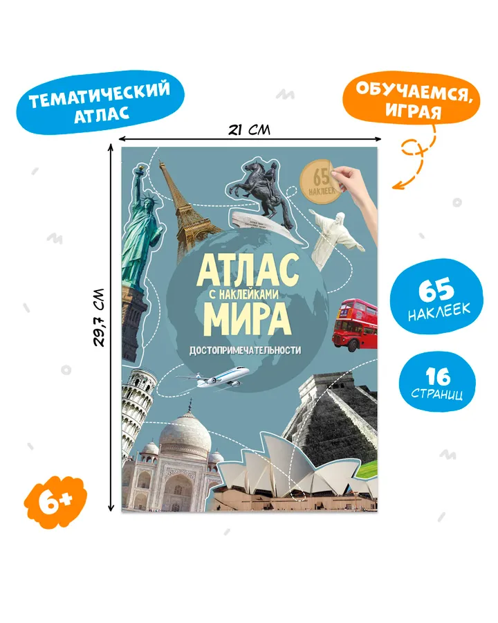 Книга Атлас Мира с наклейками Наша планетаИнтересный способ выучить страны, города, части света и флаги. Мы купили данный атлас и еще один из данной серии (по столицам и городам), а также карточную игру с флагами — каждый день учим по 3-4 новых флага и страны. Результат потрясающий! Рекомендую всем детям и взрослым для развития :)))