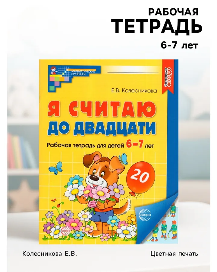 Рабочая тетрадь Сфера Я считаю до двадцати ЦВЕТНАЯ для детей 6-7 лет