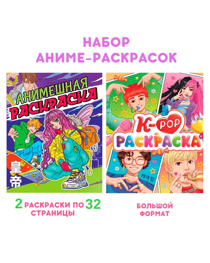 Раскраска Проф-Пресс Аниме. Набор из 2 шт. по 16 листов 242х300 мм. Анимешная+к-рор