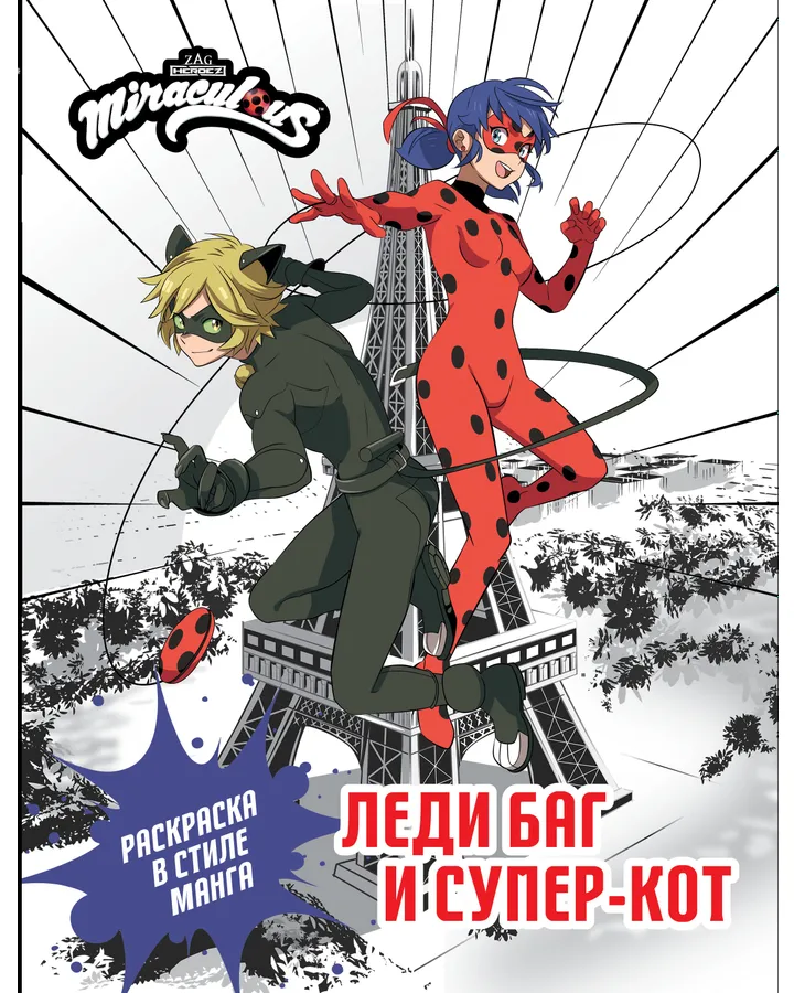 Раскраска АСТ Леди Баг и Супер Кот в стиле манга