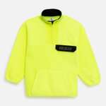 - Классный флисовый анорак! На фото, размер 92, на рост 90-91 см. Ребенку 3,5, сама снимает, надевает, удобно. Сверху непромокаемая ткань, эти места немного плотнее, сам флис не очень плотный. Яркий, сочный цвет. Свободный, не стесняет движений. Особая любовь ребенка прорези для больших пальцев и сквозной карман. Объемный капюшон, можно надевать на хвостики. Очень понравился и мне, и ребенку, смотрится интересно.
