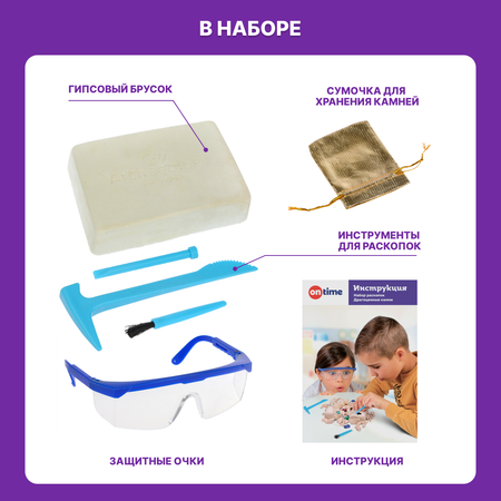 Набор для раскопок ON TIME Морские сокровищакомпактный брусок, внутри много небольших камешков, ребенок оценил игрушку