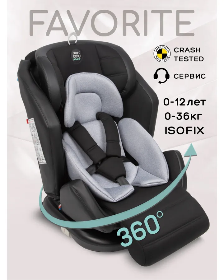 Автокресло Amarobaby Favorite Isofix 0+/1/2/3 (0-36 кг) серый