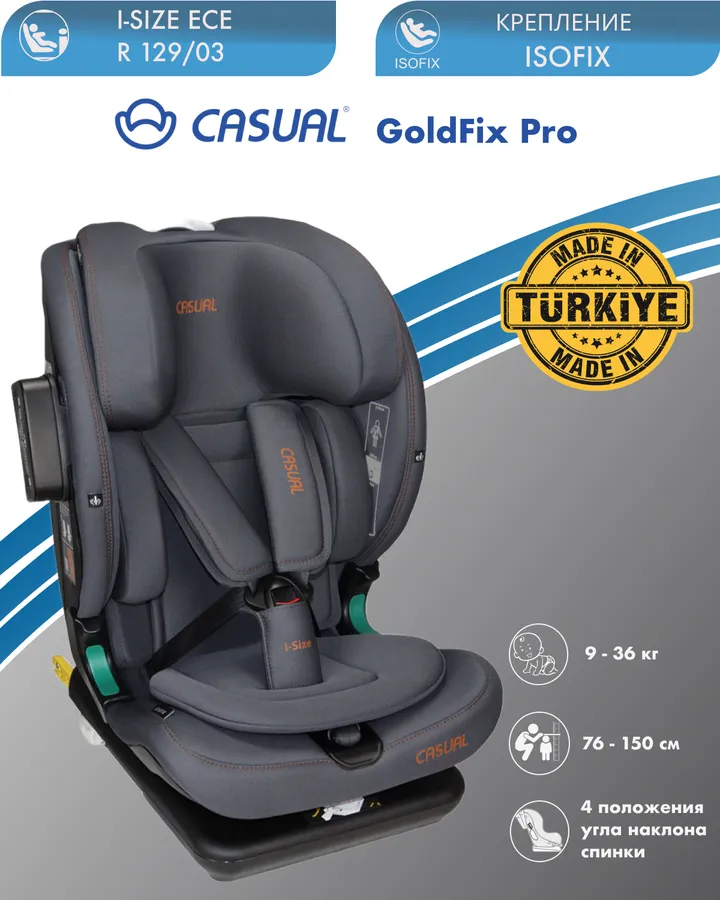 Автокресло Casual Goldfix Plus Isofix 1/2/3 (9-36 кг) серыйКлассное автокресло. Давно его присмотрела, купили ребенку на 1 год. В дальней дороге видно было, что ребенку сидеть в нем комфортно, отдыхал. Мне нравится , что можно сделать положение чуть лежа, и есть возможность включить наушники для малыша. Качество обивки достойное, цвет красивый