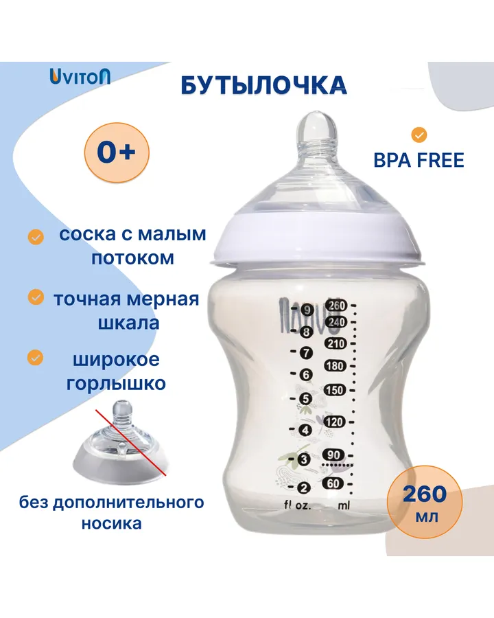 Бутылочка Uviton 250 мл 1 шт. в ассортименте