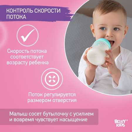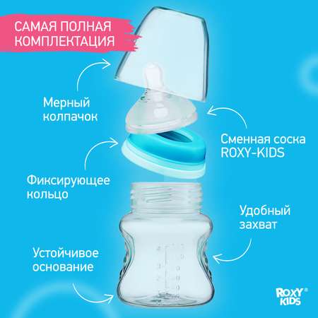 Бутылочка ROXY-KIDS 120 млСтильная бутылочка для воды и молока , очень понравилась малышу , не протекает , соска с двойным основанием не слипается