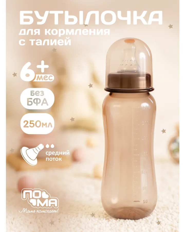 5Бутылочка Пома Easy Cup 250 мл 1 шт.Плотный пластик, удобно держать Лаконичный дизайн. Взяли такую еще зеленую Но заменили соски на 4+ того же пооизводителя. Эти плотноваты и нам тяжело из нее кушать пока