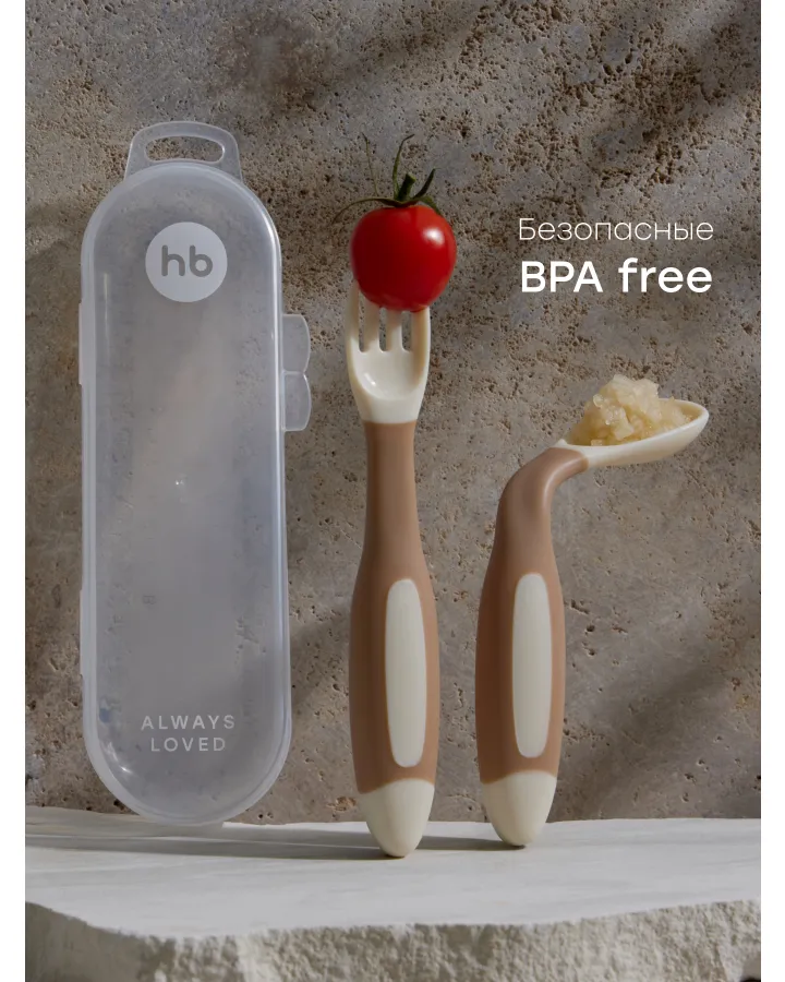 Набор посуды Happy Baby ложка и вилка Cream с 12мес 2 предм.