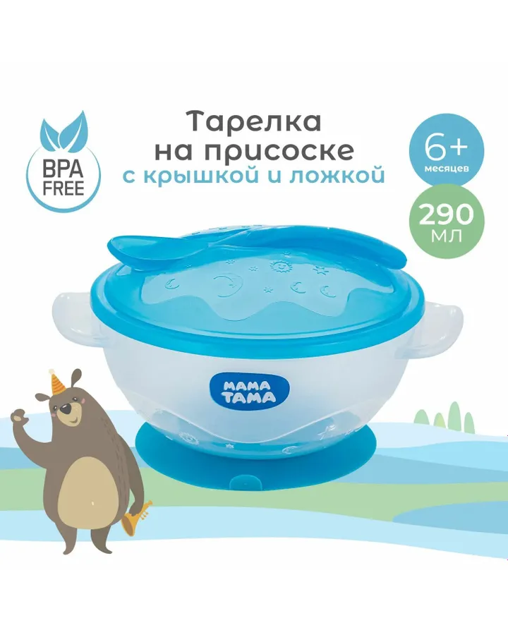Тарелка Мама Тама с крышкой и ложкой глубокая на присоске с 6месяцев 370000073