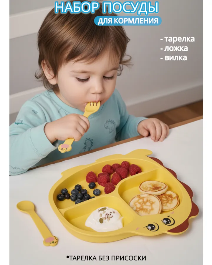 Добротная посуда, ребенок с удовольствием ест из тарелочки сам.