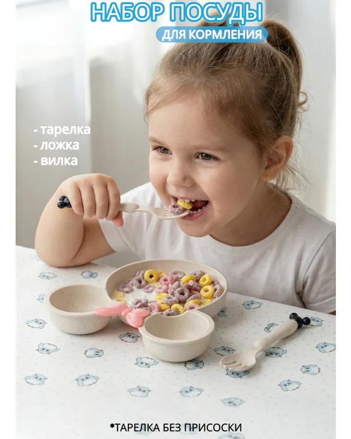 Отличная тарелка и приборы, ребенок есть с удовольствием