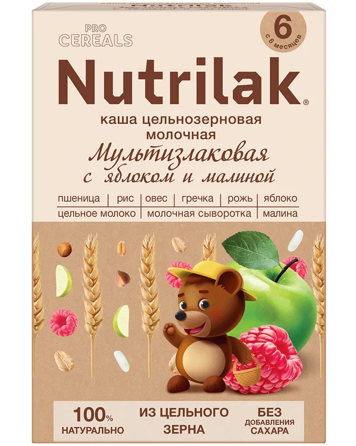 Каша молочная Nutrilak Premium Procereals мультизлаковая яблоко-малина 200г с 6месяцев