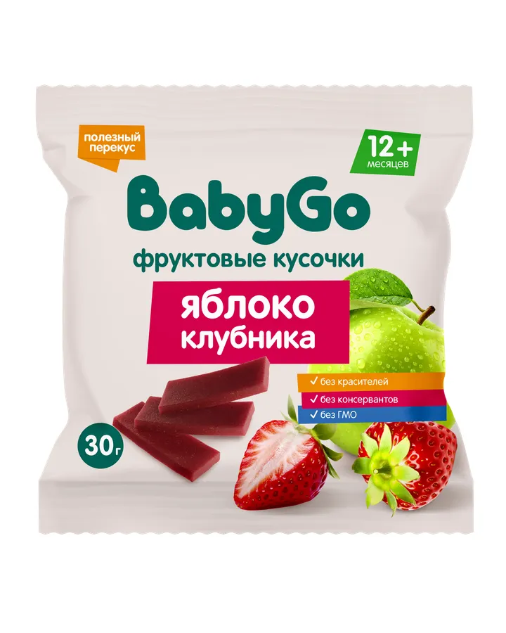 Фруктовые кусочки BabyGo из яблок и клубники с 12 мес 30 г