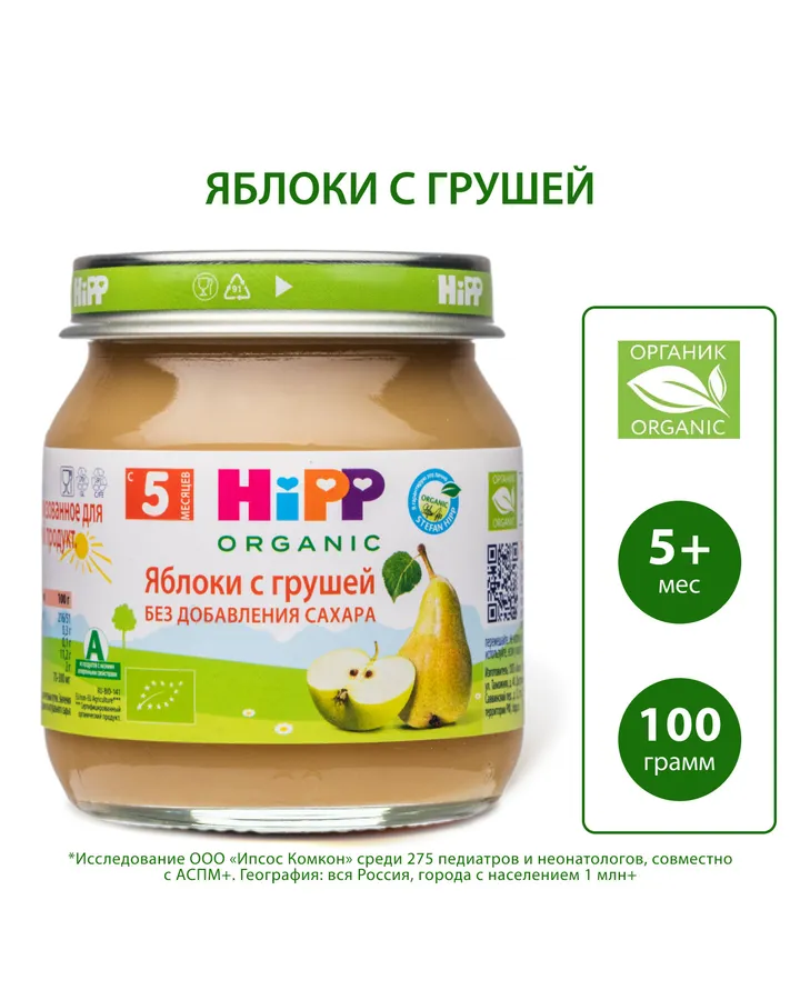 Пюре Hipp Яблоко-груша с 5 мес 100 г