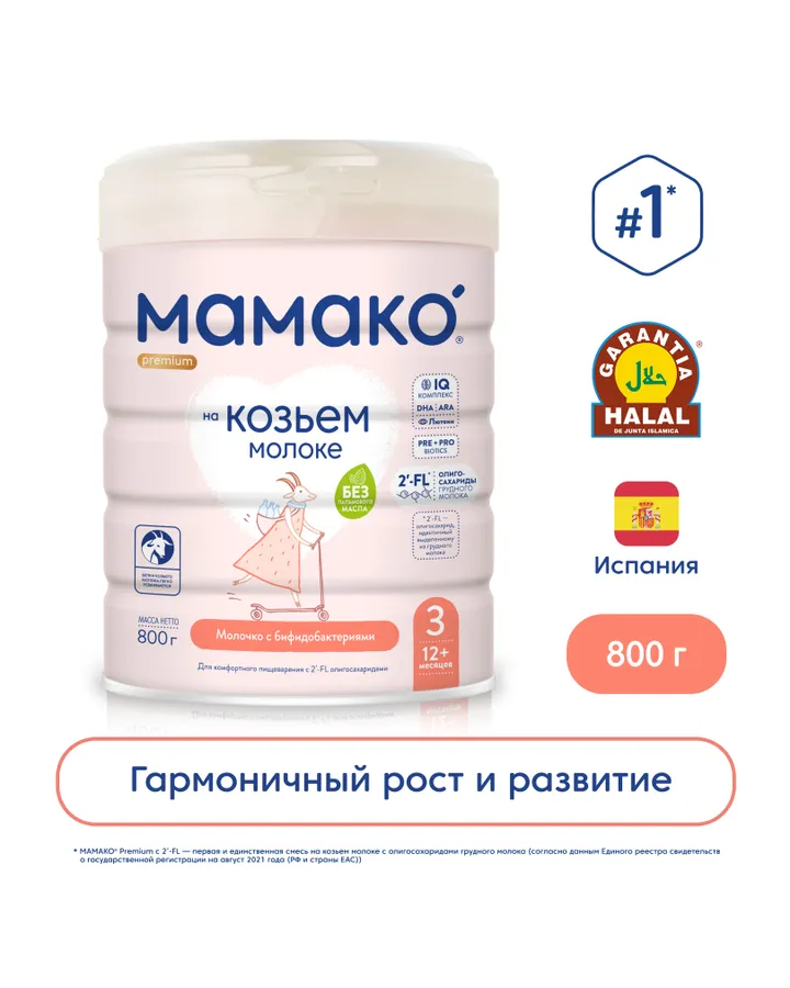 Смесь Мамако 3 Premium на козьем молоке 800г с 12месяцев