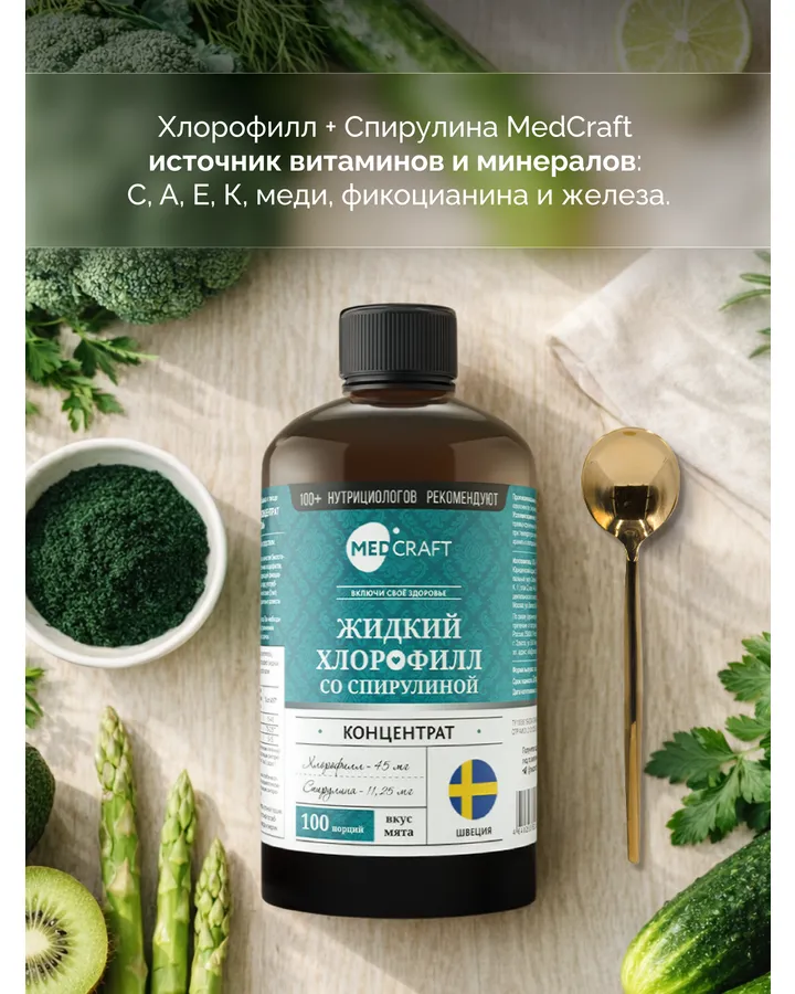 Приятный мятный вкус. На третий день ушли отёки, супер средство. Сколько всего перепробовала, только хлорофилл помог.