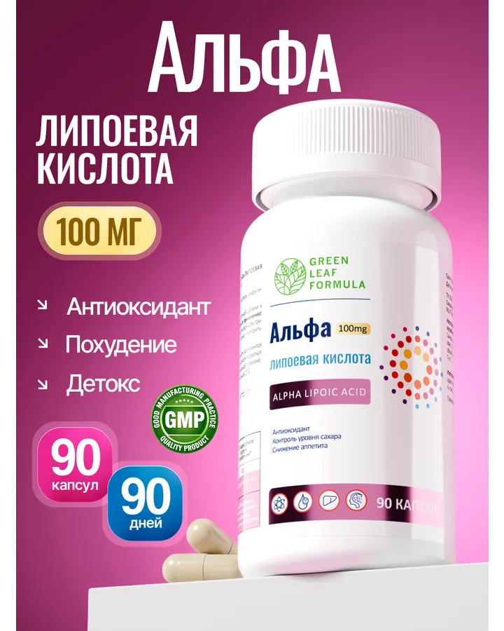 Альфа-липоевая кислота 100мг Green Leaf Formula антиоксидант для похудения очищение организма для энергии витамины для печенизаметила улучшение концентрации и меньше сонливости днем