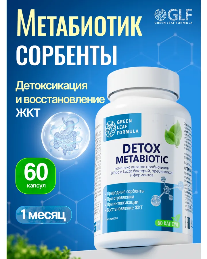 Детокс метабиотик Green Leaf Formula пробиотики при отравлении интоксикации для жкт сорбенты