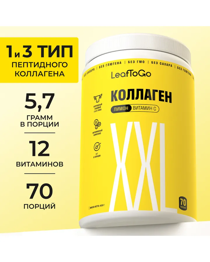 Пептидный коллаген с витамином С LeafToGo со вкусом лимона 70 порций 420г