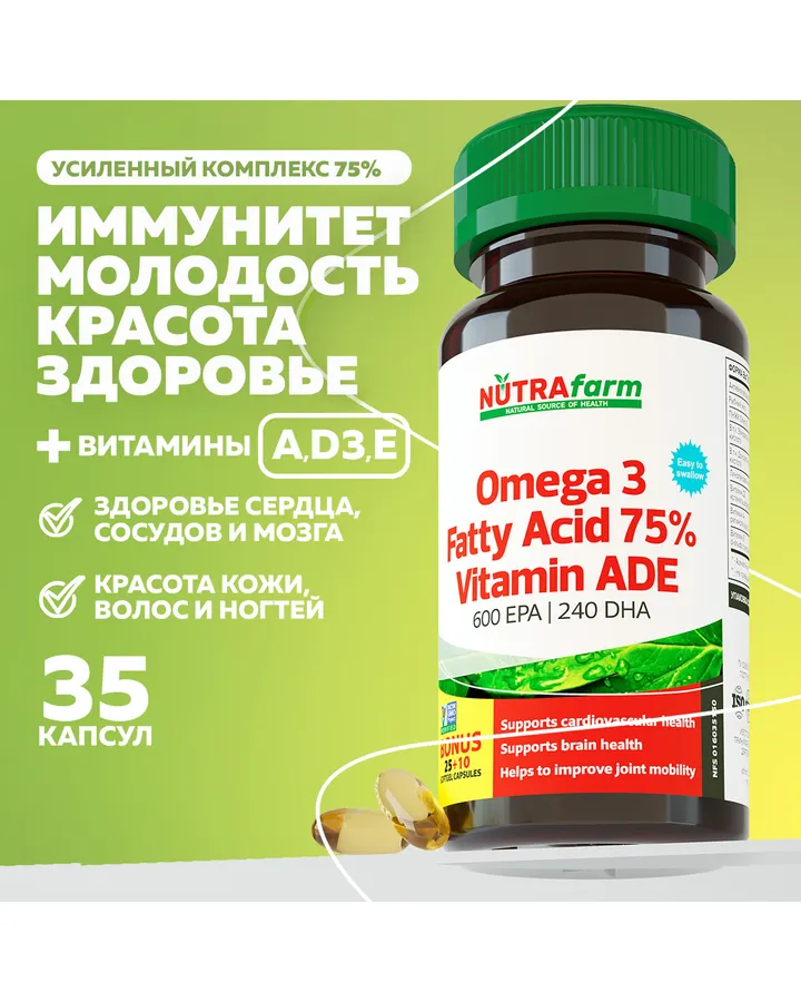 БАД к пище Nutrafarm ОМЕГА 3 ультра 75%+АDE 850 МГ 140 капсул